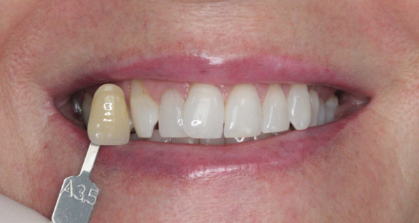 The patient chose Purewhitening home. The aim was a slight lightening of the tooth colour, which can be seen in the picture after the completion of home whitening compared to the original shade A3.